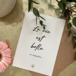 La légèreté des mots est importante pour moi. Pour les laisser parler d’eux même, j’utilise des typographies et des graphismes délicats. Ainsi le message des cartes est simple et associé à vos propres mots, il ira droit au coeur de la personne qui le recevra.