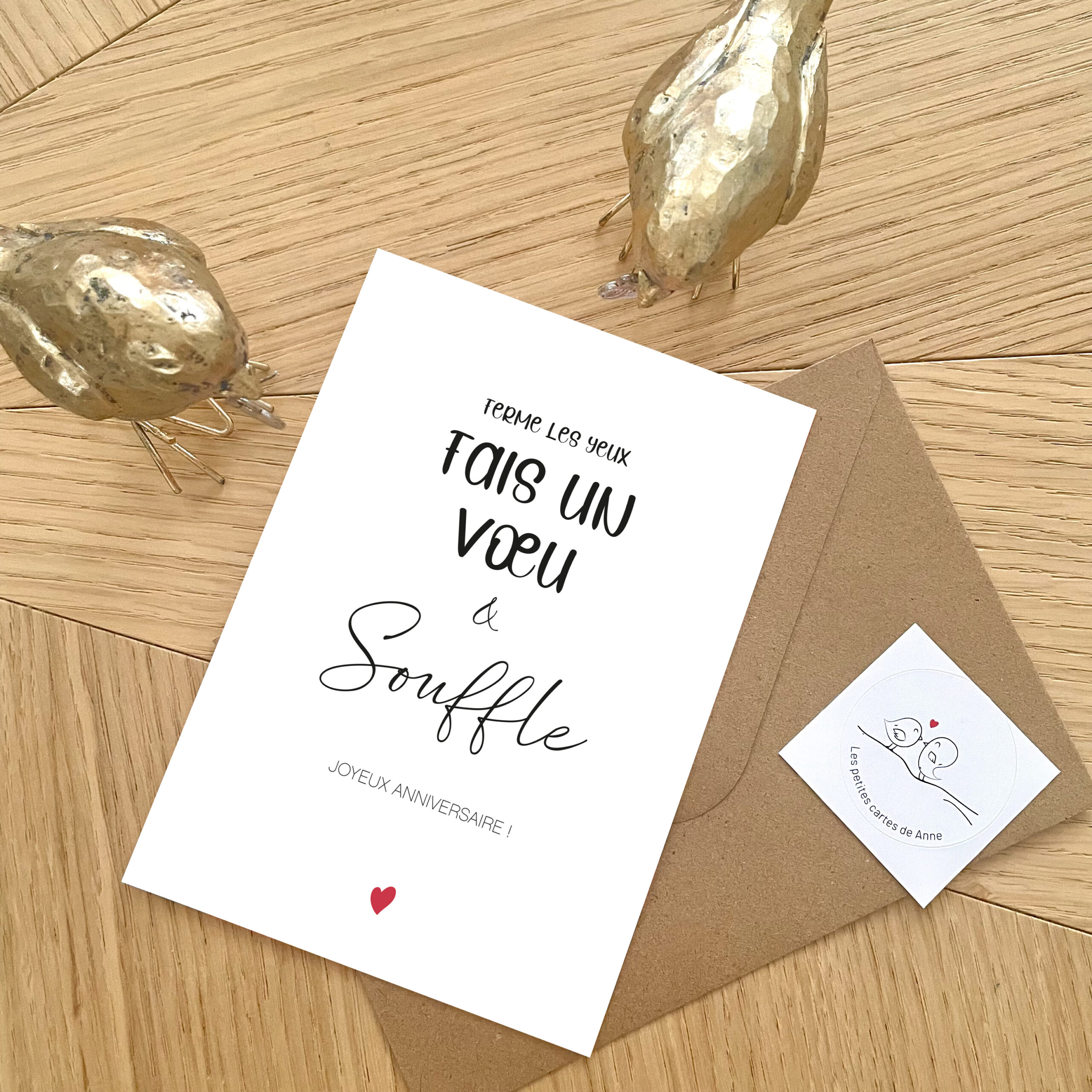 "Enveloppe & sticker", "Prête à souffler" Bougie, enveloppe & sticker", "Carte seule", "Pince dorée"