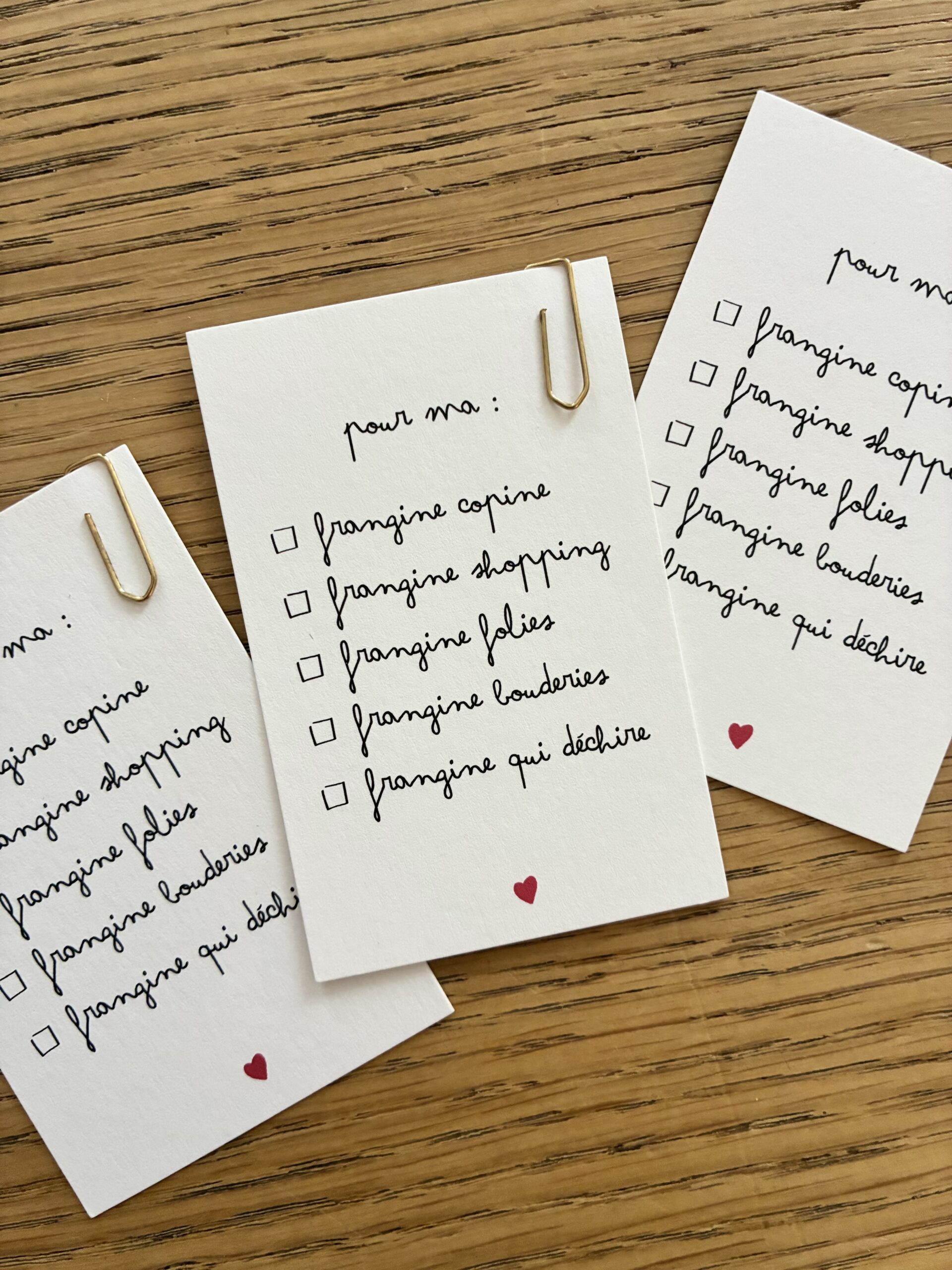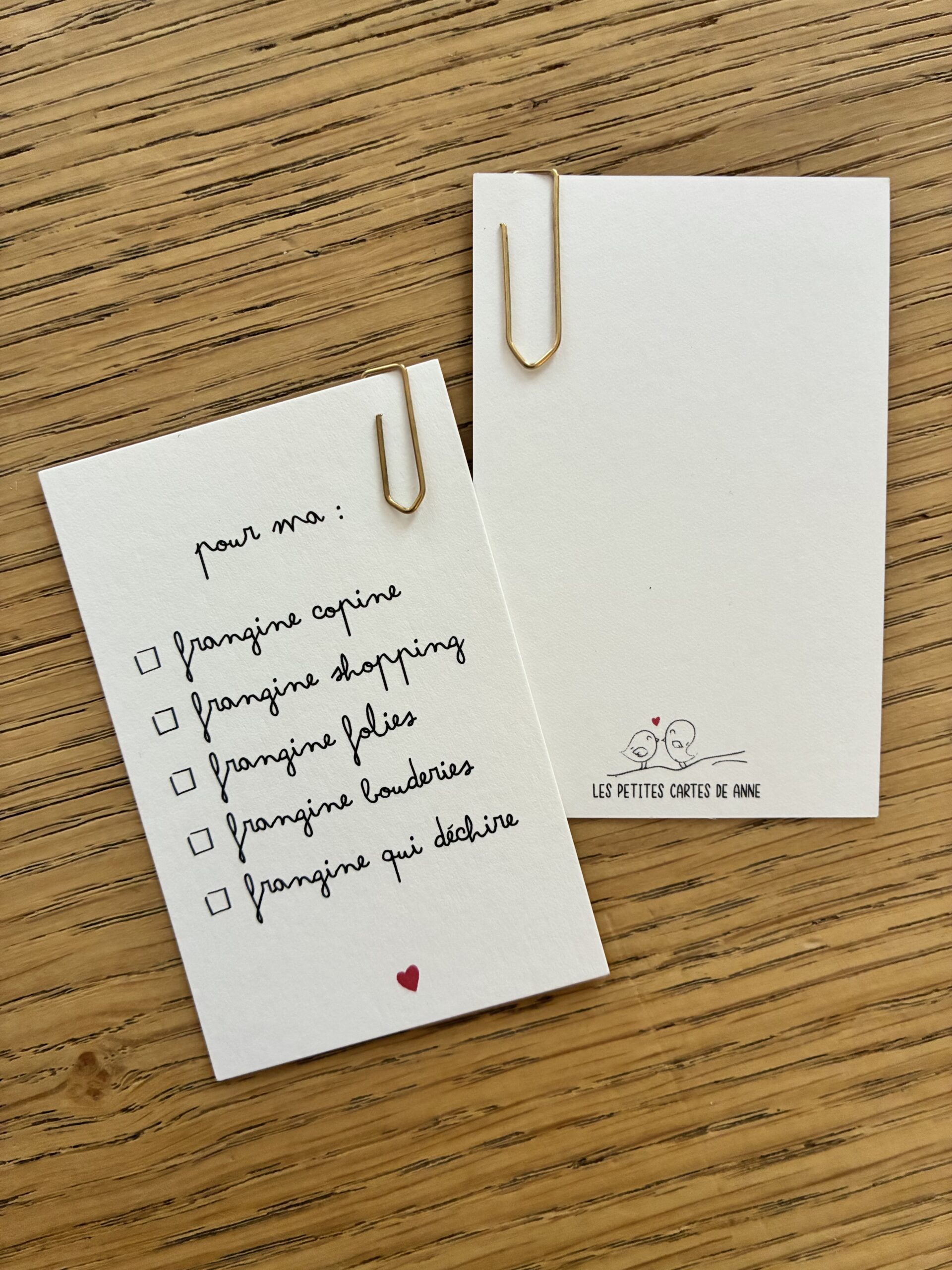 Cette carte est vendue avec une épingle à nourrice dorée pour pouvoir l’accrocher à un bouquet ou un paquet cadeau.
