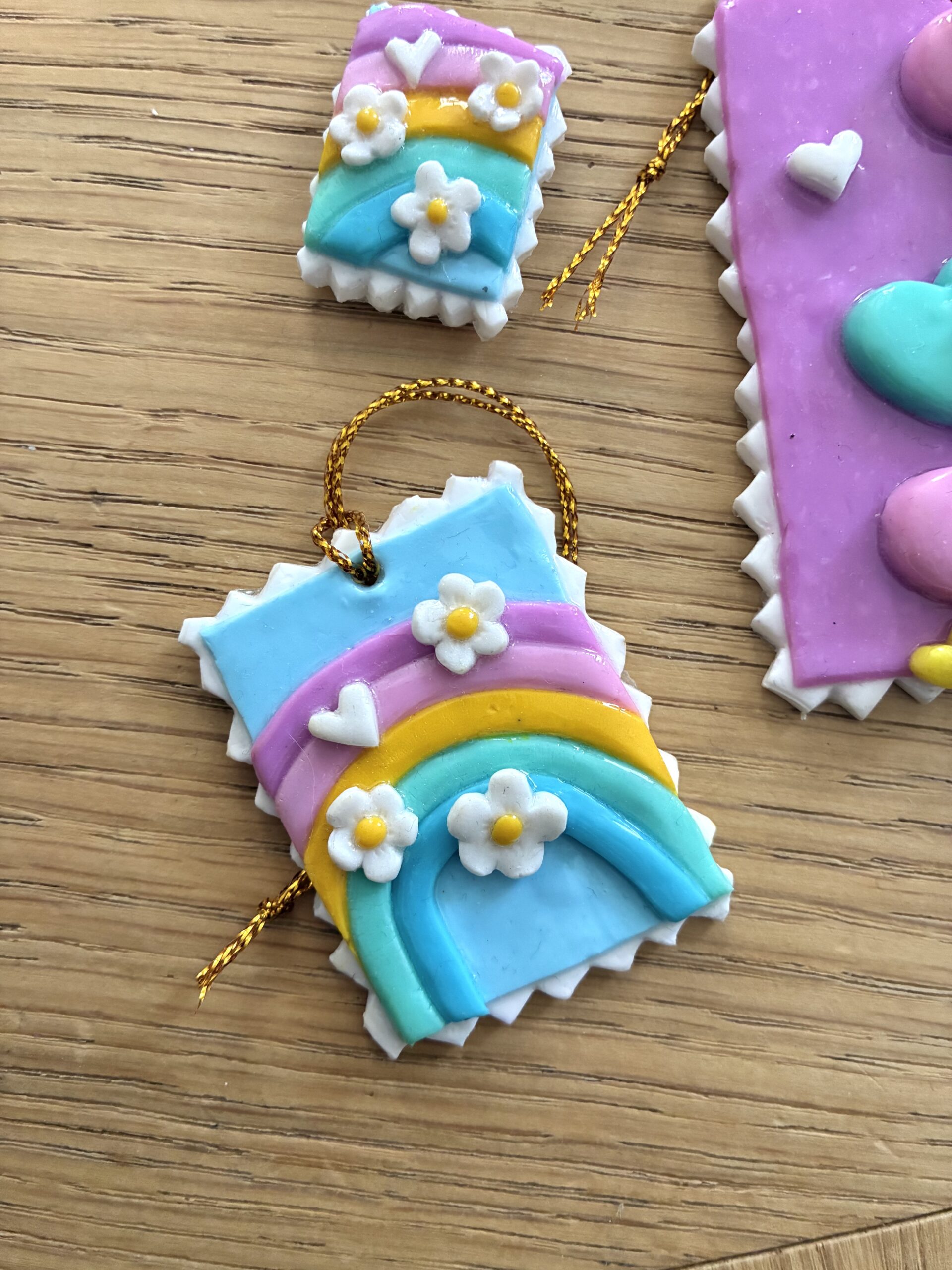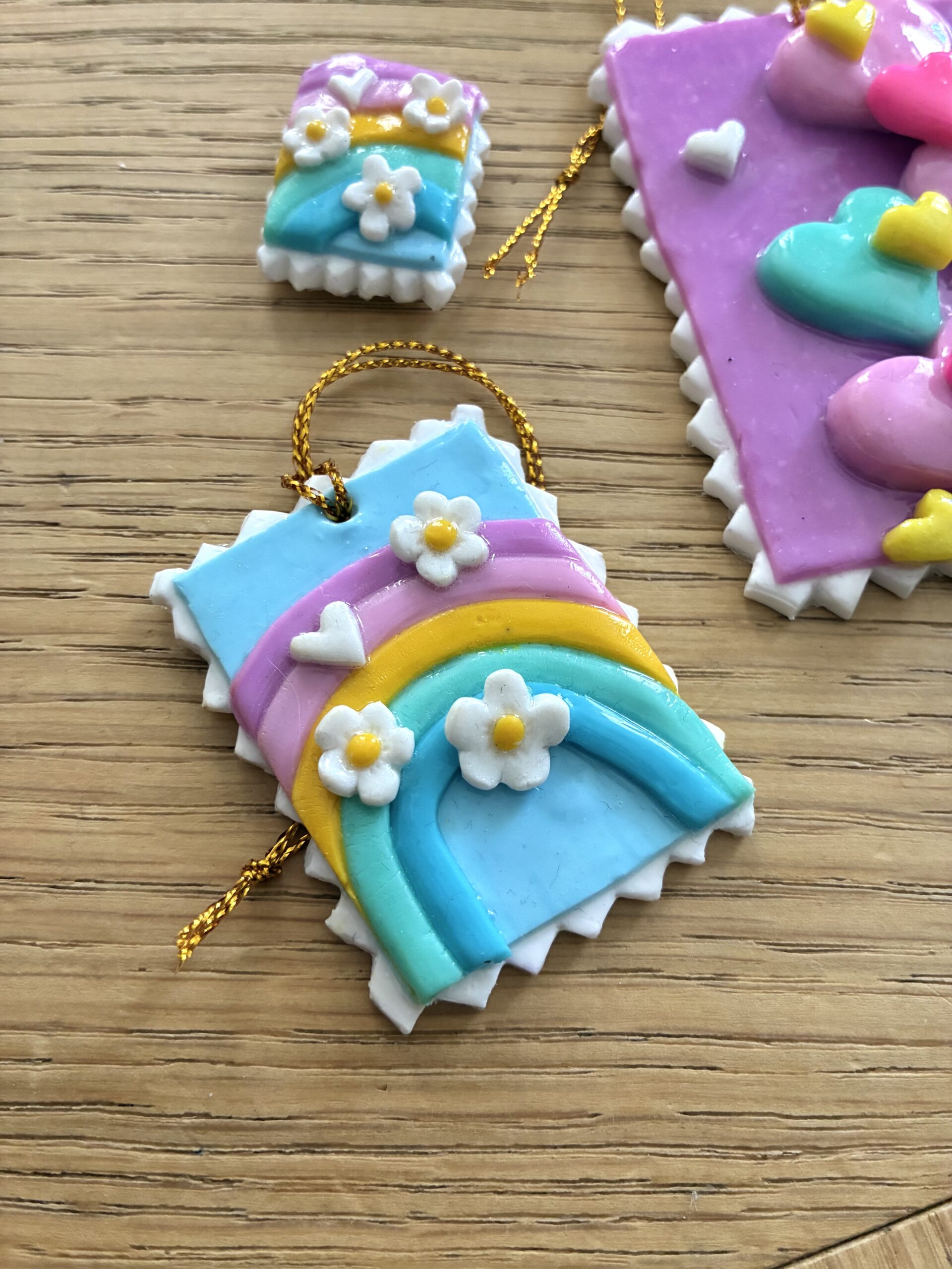 Chaque suspension est unique et n’existe qu’en un seul exemplaire. Elle est façonnée à la main à partir de pâte polymère.